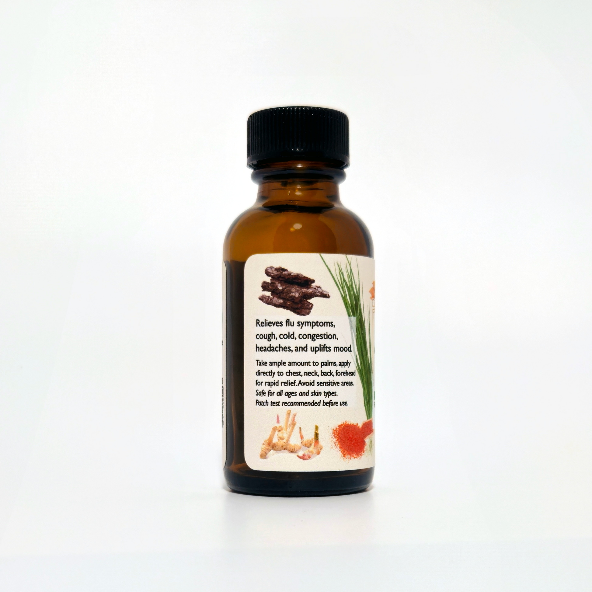 Kapha Kapha, a nurturing healing oil meticulously crafted to combat the symptoms of colds, flu, cough, congestion, and runny nose, suitable for individuals of all ages. The name "Kapha" is deeply rooted in the ancient Ayurvedic tradition, representing one of the three doshas or biological energies found throughout the human body and mind. Kapha embodies the elements of earth and water, symbolizing structure, fluidity, and nourishment. It governs the physical aspects such as body strength, community, and growth, as well as emotional aspects like compassion, patience, and loyalty. Kapha Kapha, therefore, is designed to balance and invigorate the Kapha dosha, aiding in the alleviation of symptoms associated with excess Kapha — cold, flu, and respiratory issues.