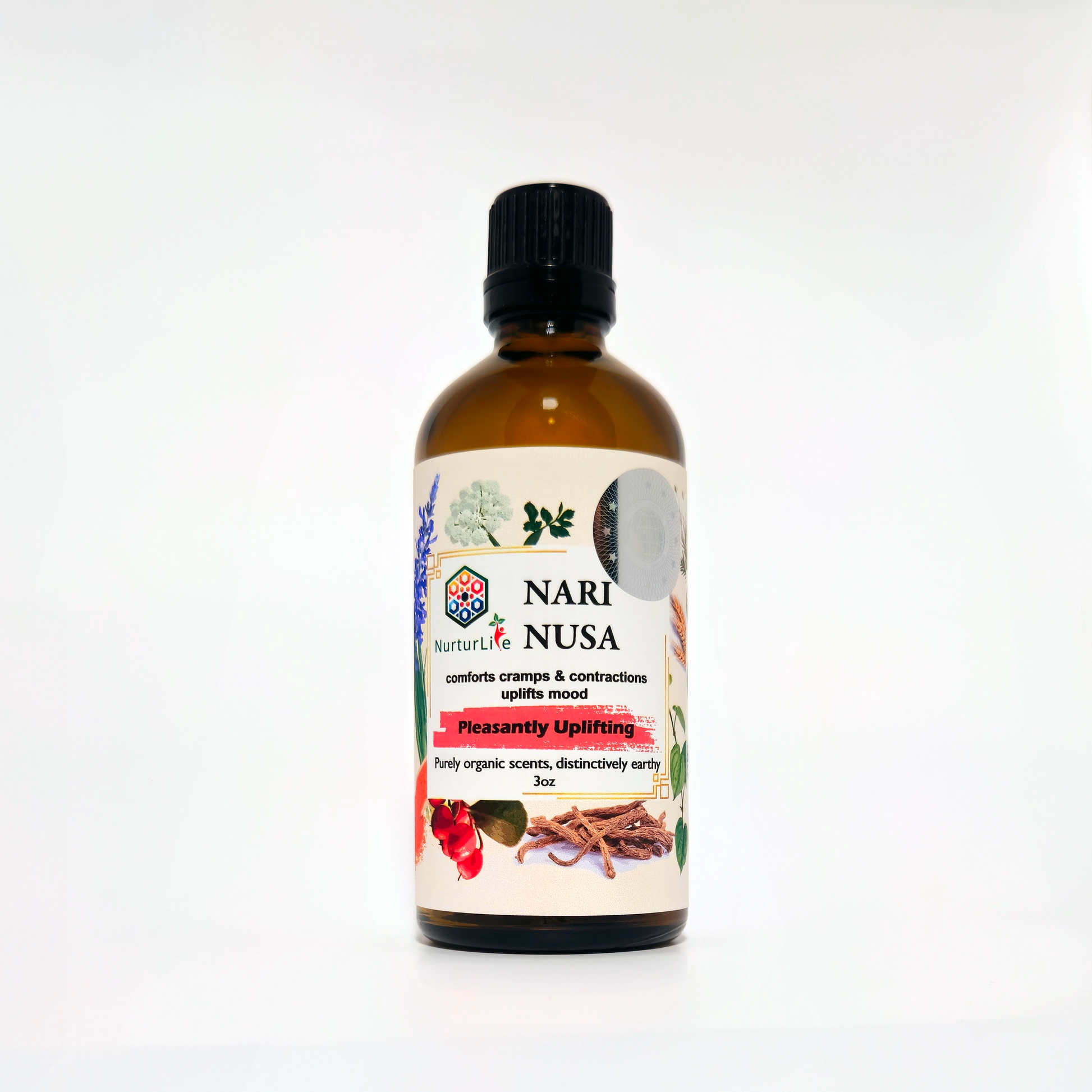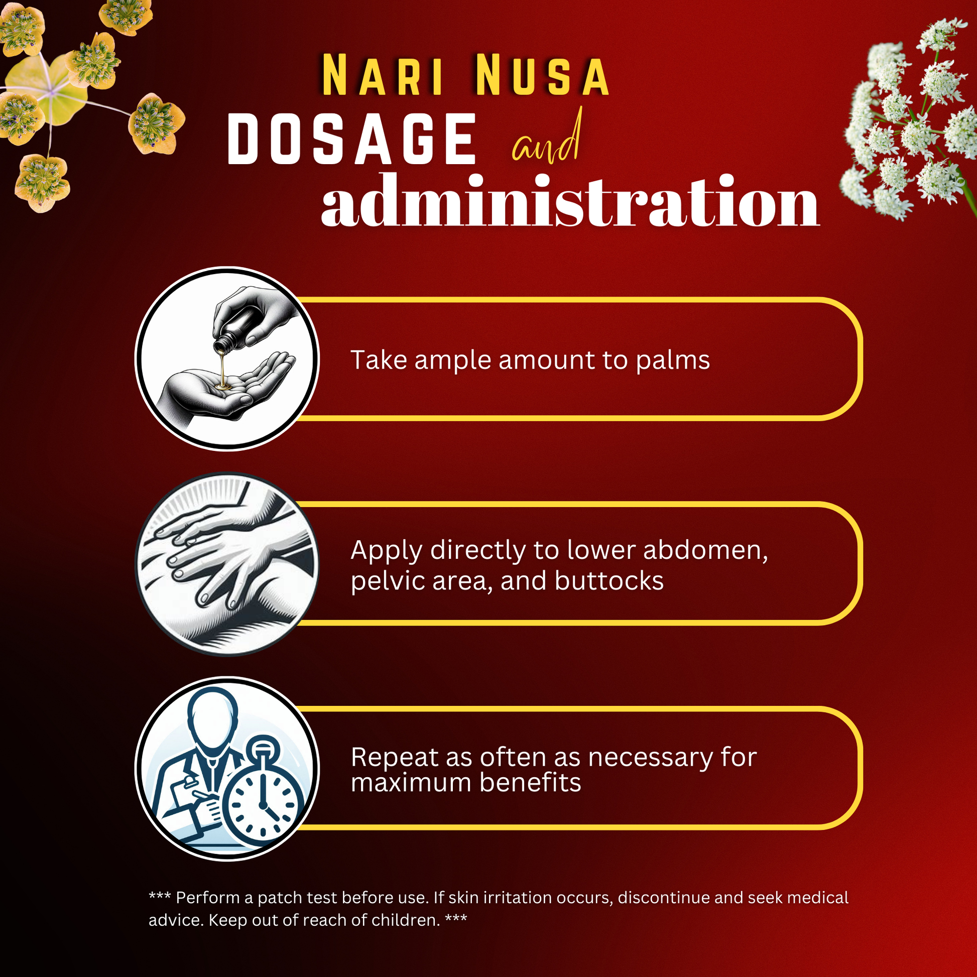 Nari Nusa, a bespoke healing oil crafted with the well-being of women at its core, designed to provide comfort and relief during the days marked by menstrual discomfort and cramps. The name "Nari Nusa" beautifully captures the essence of this product, with "Nari" symbolizing women and dance in several South Asian languages, reflecting grace, strength, and vitality, and "Nusa" referring to islands in the Indonesian archipelago, evoking the rich, natural heritage of the region. Together, "Nari Nusa" signifies the celebration of women's wellness and the natural bounty of the islands, a tribute to the nurturing power of nature dedicated to women's health.